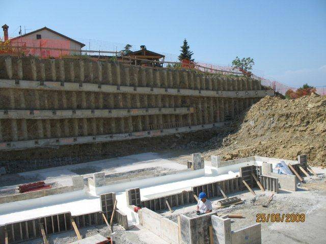sidranje pilotne stene za zaščito izkopa gradbene jame